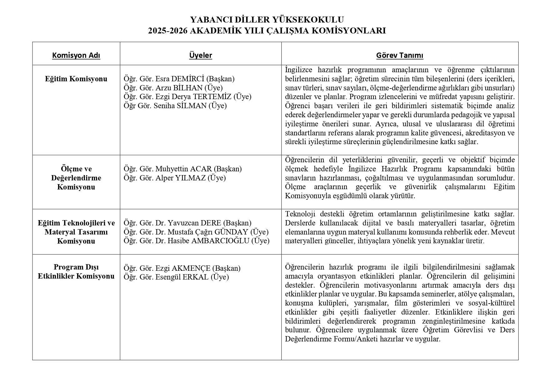 2025/2026 Hazırlık Sınıfları Öğrenci El Kitapçıkları
