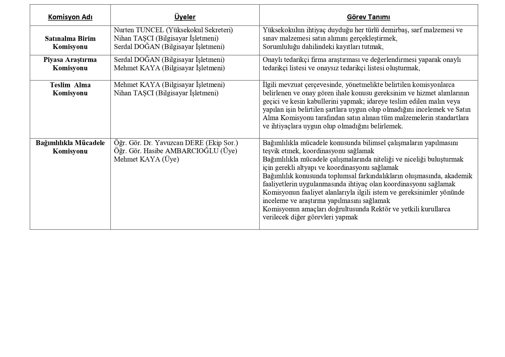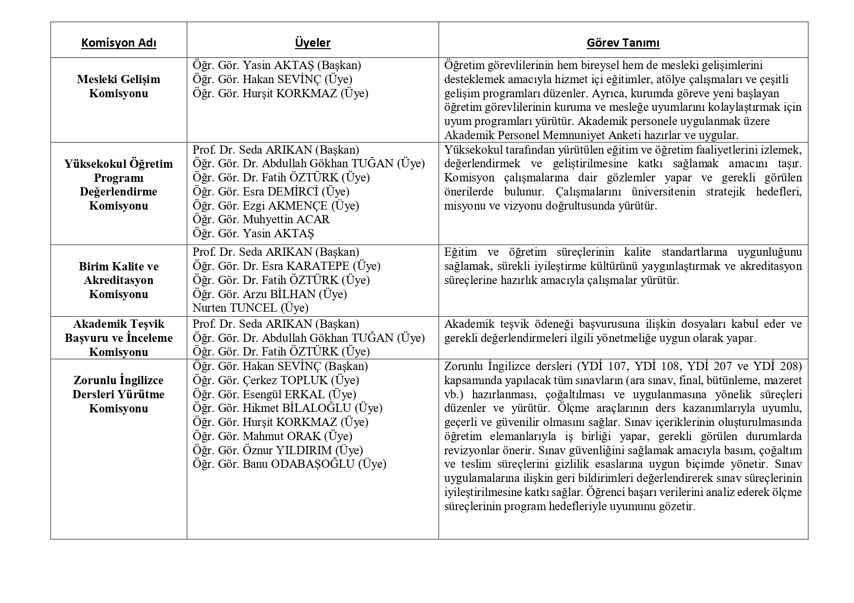 Standart: 2. Misyon, Organizasyon Yapısı ve Görevler