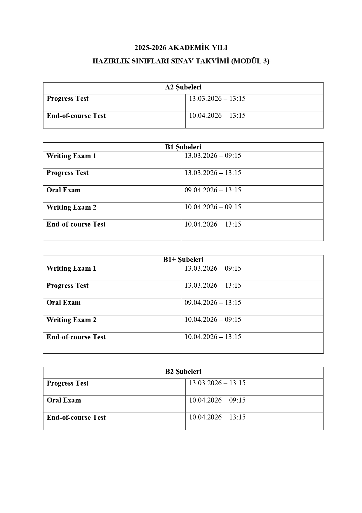 2025-2026 Bahar Dönemi MODÜL 3 Şube Ders ...